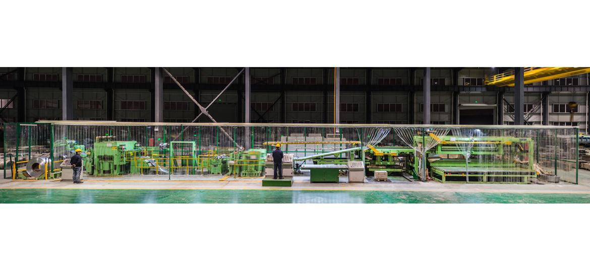 KP-002開平機組,系進口的專業超薄板鋼卷整平裁剪設備。該機采用性能優越的日本“RELIANCE”直流控制系統,主要電機、電氣元件、軸承等零件均為高品質名牌元件,確保了該機高速、穩定的運行。加工原料鋼卷重量最大可達7噸,直徑1500mm,寬度800mm,有19輥精整機構,產品平坦優良;該機組還配備了日本專利的高速連續回旋式剪床,鋼板經NC計算機控制定尺裝置精密計算,產品精度優異,生產效率一流,可裁剪0.25-2.0mm厚度的鋼板,疊料站可收150mm-5000mm的板材,并配備平行分離式無傷收料托架,從而使產品擁有整齊的外型。主要加工冷軋、鍍鋅、烤漆、馬口鐵、不銹鋼、鋁合金、銅合金等材料。